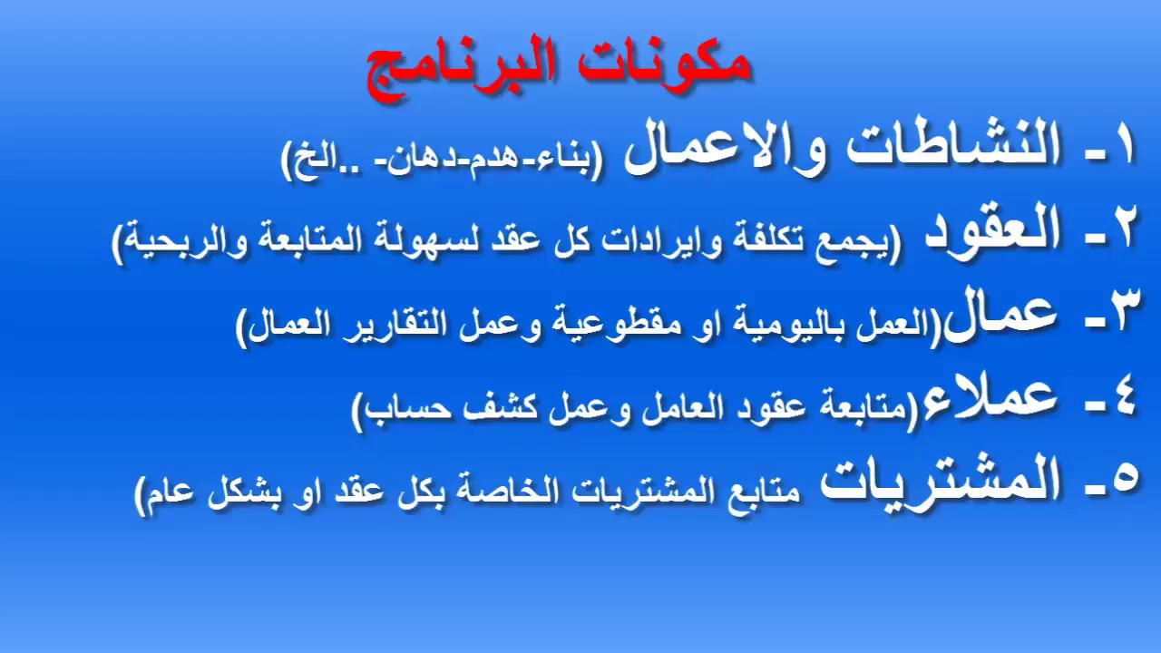 برنامج مقاولات المحاسب العربى لإدارة المشاريع ومواقع البناء 01007007091
