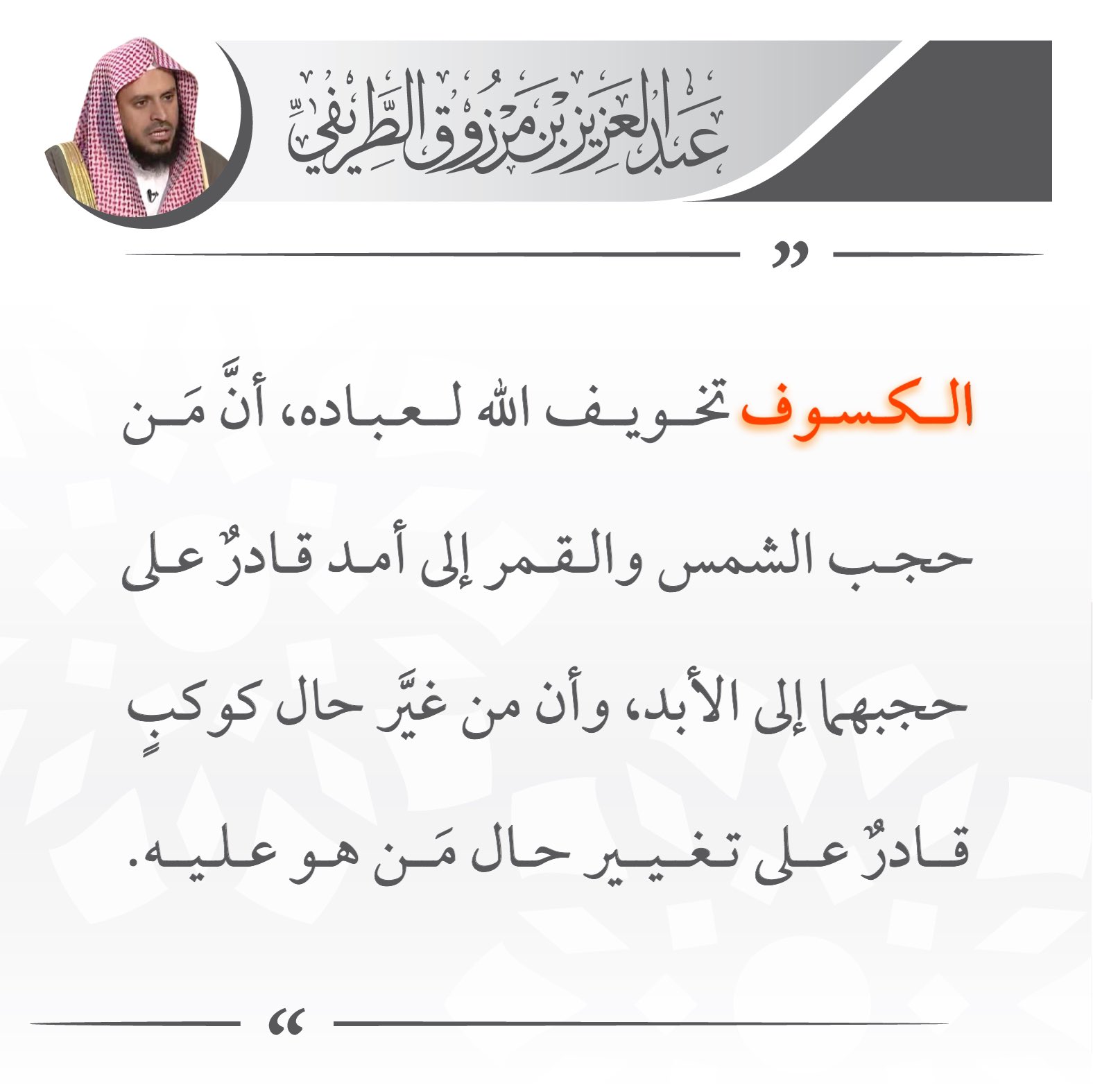قناة زدني علم ا On Twitter تغريدة وما نرسل بالآيات إلا تخويفا للشيخ عبدالعزيز الطريفي Abdulaziztarefe